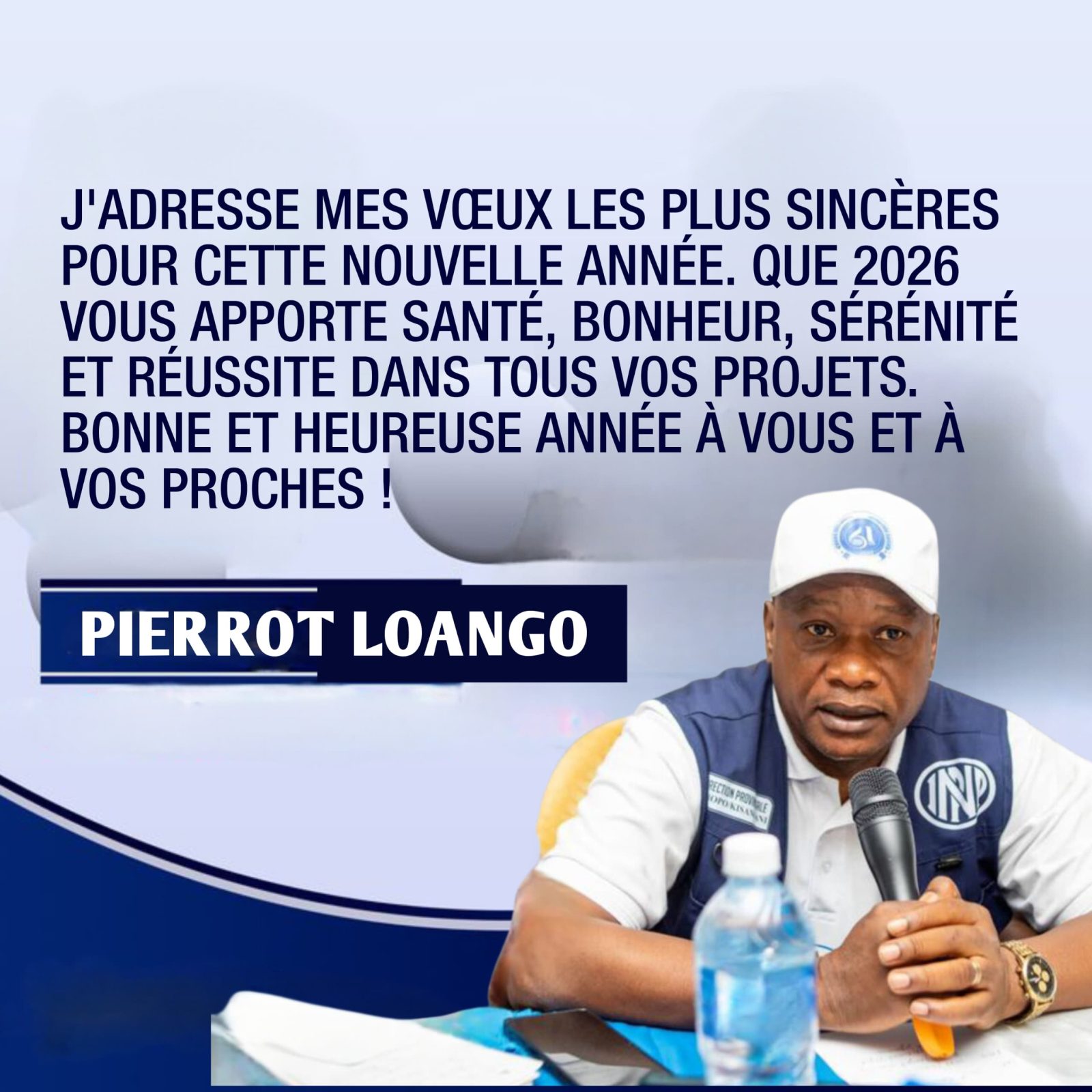 Kisangani, 1er janvier 2026 – Dans un esprit de fraternité et de responsabilité, le Directeur provincial de l’Institut National de Préparation Professionnelle (INPP) Tshopo, M. Pierrot LOANGO, a adressé en ce début d’année ses meilleurs vœux à l’ensemble des agents, cadres et collaborateurs placés sous sa juridiction, mais aussi à ses amis, frères et connaissances.